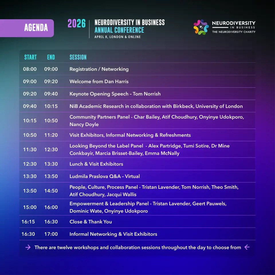 The NiB Conference has grown year after year to become the largest and most impactful event in the neurodiversity space, bringing together voices from across industries, communities, and lived experiences. Building on the success of previous conferences, our 2026 event will be our most ambitious yet, offering more opportunities to connect, collaborate, and champion neurodivergent talent. This is not just a conference, but a movement that continues to shape workplaces and society for the better